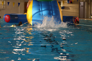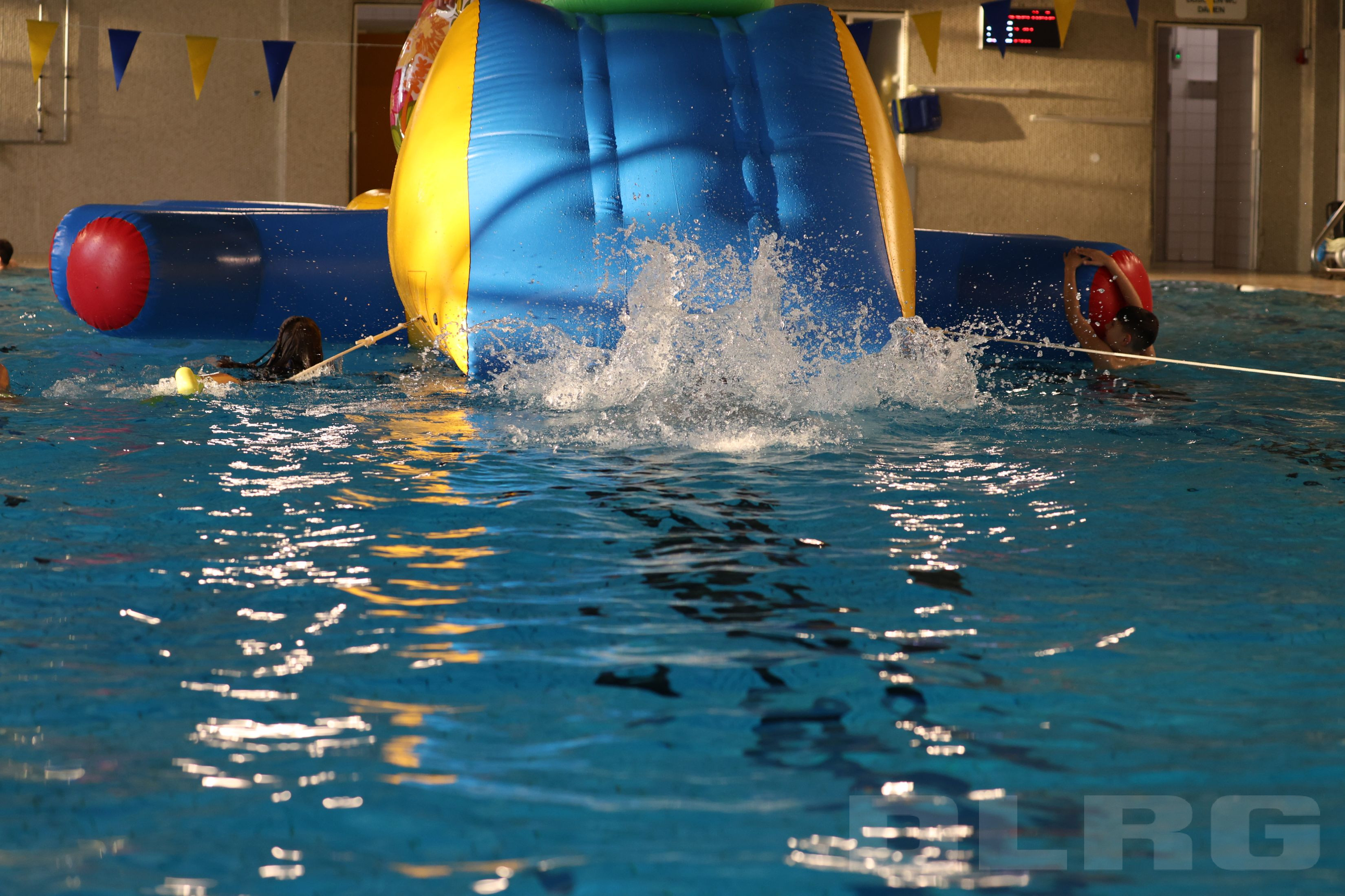 Ein besonderes Highlight war die riesige Krake im Wasser, die schnell zum Mittelpunkt des Geschehens wurde. Wer es schaffte, auf ihr Platz zu nehmen, wurde mit jeder Menge Spaß und guter Laune belohnt. Auch die zahlreichen aufblasbaren Bälle und Schwimmtiere boten vielfältige Spielmöglichkeiten und machten das Becken zu einer bunten Erlebnislandschaft.